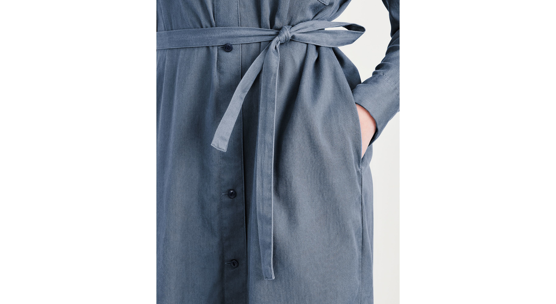 We thought through every detail of this classic midi dress, from the accentuated waist belt to the beautiful drape to the slightly dropped shoulder.
